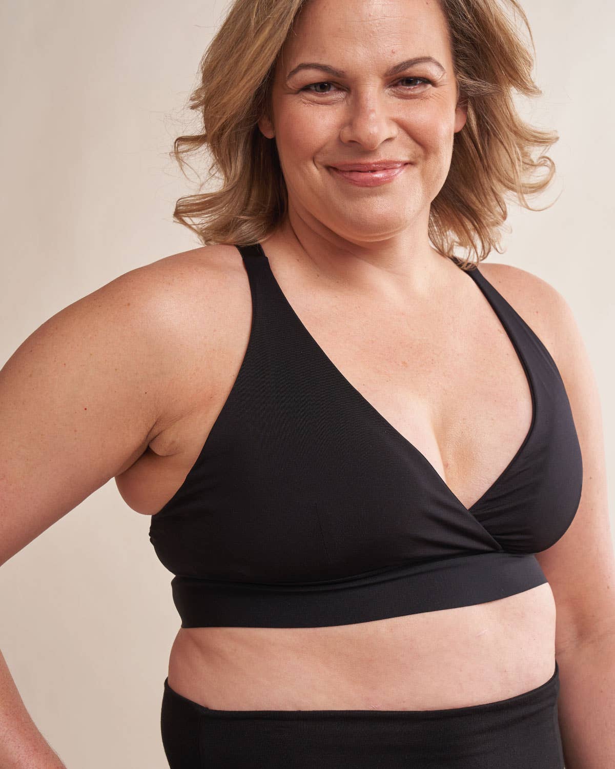 The smooth fabric is soft around your sensitive areas to minimize irritation. The cross-back mesh back panel allows for breathability and style, while a three-hook closure and adjustable straps allow for a customizable fit. The super-cute wrap front is perfect for supporting you with whatever body type you have, whether you have two boobs, one boob, no boobs or F(oo)Bs! The Paige back closure sports bra is totally boob-inclusive for all results after your surgery.